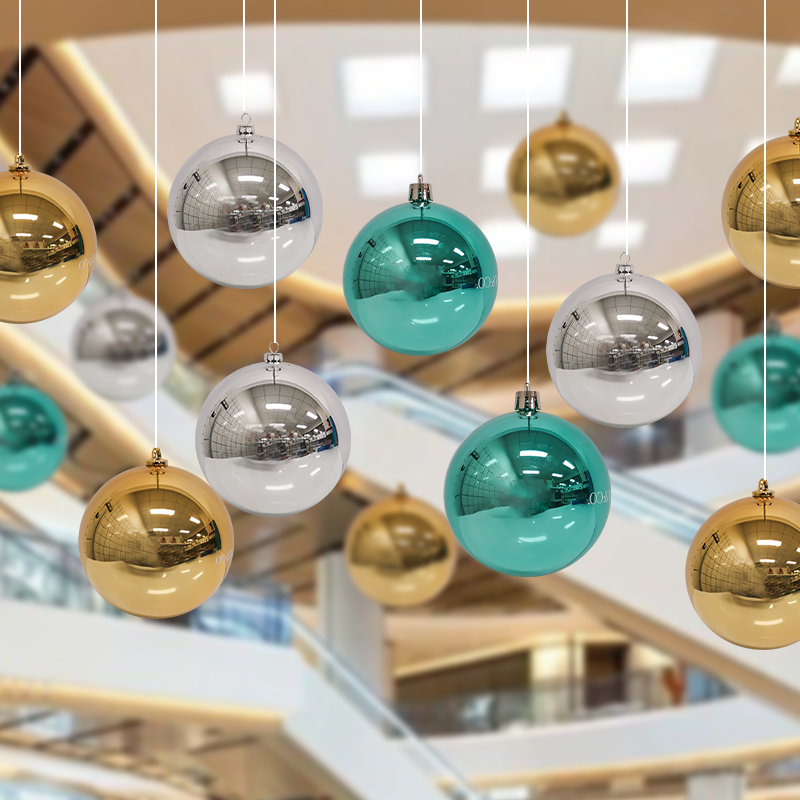 - Shopping malls: When customers walk through the shopping malls, seeing these shiny metallic decorative balls hanging between the green pine branches, and red berries, pine cones and other elements with each other, as if in a Christmas world full of joy and surprises, so as to prolong the customer's stay in the shopping malls and promote consumption.