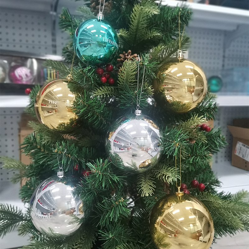 This is a specially designed decorative ball for Christmas, its body shows extremely eye-catching gold, silver and blue-green, these colours are bright and energetic. The surface of the decorative ball is extremely smooth, like a mirror, with a strong metallic luster texture, can reflect the surrounding environment clearly, creating an eye-catching visual effect for the entire space, easily become the visual focus.